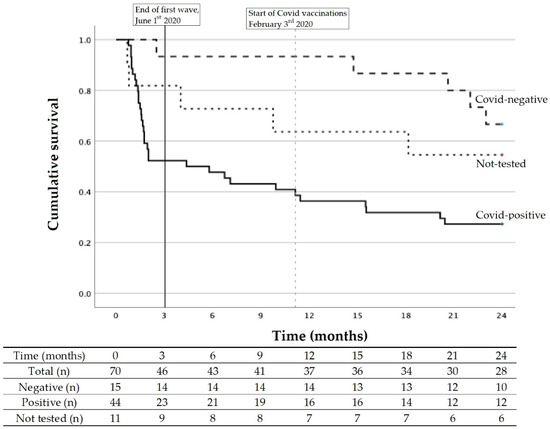 APA StyleVries, D. d., Röhlinger, D., Everink, I., Winkens, B., Heffels, J., Gordon, A., & Schols, J. (2024). COVID-19 in a Dutch Nursing Home: A Longitudinal Retrospective Care-Home-Level Case Study on Infection Rate, Survival Rate, and Daily Functioning. Journal of Clinical Medicine, 13(1), 149. https://doi.org/10.3390/jcm13010149