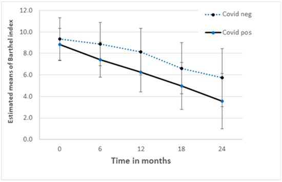 - Trevissón-Redondo, B.; López-López, D.; Pérez-Boal, E.; Marqués-Sánchez, P.; Liébana-Presa, C.; Navarro-Flores, E.; Jiménez-Fernández, R.; Corral-Liria, I.; Losa-Iglesias, M.; Becerro-de-Bengoa-Vallejo, R. Use of the Barthel Index to Assess Activities of Daily Living before and after SARS-COVID 19 Infection of Institutionalized Nursing Home Patients. Int. J. Environ. Res. Public Health 2021, 18, 7258. [Google Scholar] [CrossRef] [PubMed]