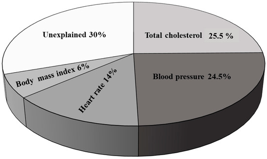 The positive long-term effect of physical activity on BP reduction and the prevention of target organ damage in hypertensive patients is not questionable. Vriz et al. [34] clearly demonstrated the efficacy of maintaining the same level of aerobic exercise for 3 months on BP levels. They compared 331 male non exercisers, 192 male mild exercisers and 49 male heavy exercisers and found an important reduction in diurnal systolic BP among the subjects who performed physical activity at a high-intensity level in comparison to inactive subjects (135.4 ± 0.6 mmHg among heavy exercisers, 134 ± 0.8 among mild exercisers, 132.2 ± 1.6 mmHg among sedentary subjects; p < 0.05 sedentary patients compared to heavy exercisers), demonstrating the beneficial effect of exercise training in reducing BP levels, which persisted through the three months of follow-up, during which the patients went on to perform the same level of exercise [34]. Similarly, in a review article, Cardoso et al. [35] concluded that both single episodes of aerobic training and chronic aerobic training were beneficial in terms of ambulatory BP reduction. In contrast, the beneficial effect of resistance training was demonstrated in the short term but not in the long term [35]. Moreover, long-term physical activity also showed a beneficial effect on hypertension mediated target organ damage [36,37,38,39,40]. Again, data from the HARVEST study [36] demonstrated among 454 untreated stage I hypertensives that regular aerobic physical activity over 8.3 years was associated with a lower left-ventricle mass among exercisers (39.0 ± 7.2 g/m2.7) in comparison to sedentary subjects (41.4 ± 9.0 g/m2.7; p = 0.02). Moreover, an increase in left-ventricular mass among sedentary subjects was detected during the follow-up (1.4 ± 6.5 g/m2.7), while no significant progression was observed among the active ones (0.6 ± 7.1 g/m2.7; p = 0.03). In a multivariate regression analysis, adjusted for several clinical confounders including age, sex, BMI, systolic and diastolic BP, hypertension duration, parental hypertension, follow-up length, smoking habits, coffee and alcohol intake, baseline left-ventricle mass, BP and weight changes during follow-up, aerobic physical training was a negative predictor of the increment in left-ventricular mass (O.R 0.26, 95 %CI 0.07–0.09, p = 0.033) [36]. According to the literature, several mechanisms have been proposed for the favorable effect of exercise on hypertensive-mediated organ damage. As mentioned above, one of the main determinants is the BP reduction induced by regular physical activity [41,42] followed by the reduction in body weight [43,44], improvement in vascular function and cardiac structure [37] as well as favorable modifications to metabolic parameters such as the increment of insulin sensitivity, a reduction in the activity of the renin–angiotensin–aldosterone system [40,45] and the sympathetic nerve system [7,14]. The efficacy of regular aerobic exercises in the long term was also described at the carotid artery level. Palatini et al. [39] demonstrated that patients who performed regular physical training at the end of a follow-up that lasted 6.5 years showed a reduction in the mean intima-media thickness (p = 0.01) at every single site, including the common carotid artery (p = 0.01), bulb (however, not significant p = 0.13) and internal carotid artery (p = 0.05), as well as in the maximum intima media thickness (p = 0.006), again at every single site, including the common carotid artery (however, not significant p = 0.09), bulb (again, not reaching the level of statistical significance p = 0.21), internal carotid artery (p = 0.01), in comparison to sedentary ones. In addition, the authors investigated the role that each single parameter has in the beneficial correlation between exercise and slowing the process of thickening of the intima-media at the carotid artery (Figure 2) and found that the main contributor was the reduction in total cholesterol, arterial pressure, heart rate and BMI [39]. This evidence confirmed the important role of regular physical training in counteracting the arterial stiffening of large vessels, such as the carotid artery, in young-to-middle-aged subjects with stage I hypertension through the important and beneficial modifications that act on the main components of the enhanced risk for cardiovascular disease [39]. The efficacy of long-term of physical activity was also demonstrated at the level of small vessels, confirming the fundamental role of exercise in contrasting the arterial aging phenomenon. This was shown by Saladini F et al. [12], not only at enrolment (Figure 1) but also after 6 years of follow-up (Table 1). Physically active (n = 102) subjects presented better distensibility parameters compared to subjects that did not regularly perform physical training (n = 264). However, the differences at the end of follow-up only reached statistical significance for small-vessel compliance after adjusting for age and gender [12]. The authors also investigated the longitudinal changes in the augmentation index and total peripheral resistances and found a significant time x group interaction (p for active vs. sedentary x baseline versus follow-up was 0.020 and 0.045, respectively [12]). One of the main determinants of the favorable effect of physical training on vascular function is the lower heart rate in trained individuals. According to the literature, the role of heart rate has been controversial for a long time, as previous findings seemed to advocate a cross sectional relationship between heart rate and arterial stiffness. In fact, according to a previous analysis, it was observed that the gradual increment in the heartbeat obtained through the stimulus of a cardiac pacemaker led to a consensual and gradual increment in the velocity of the pressure arterial wave [15,46]. A positive association between heart rate and pulse wave velocity was also found in a longi