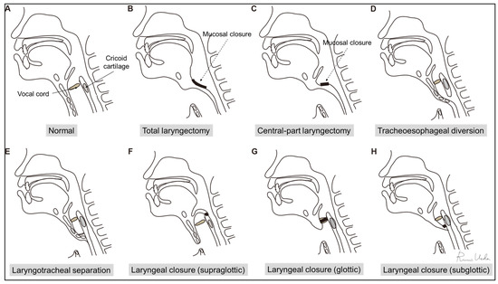 - Ueha, R.; Magdayao, R.B.; Koyama, M.; Sato, T.; Goto, T.; Yamasoba, T. Aspiration prevention surgeries: A review. Respir. Res. 2023, 24, 43, Erratum in Respir. Res. 2023, 24, 123. [Google Scholar] [CrossRef]