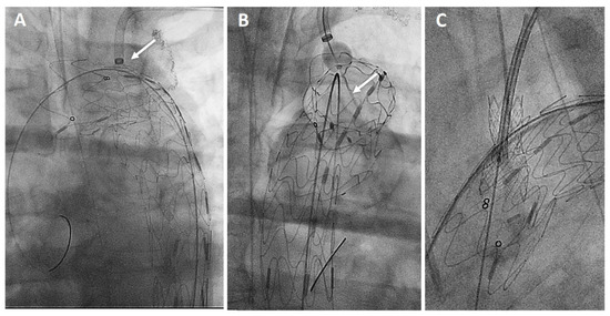 Considering the potential perspective applicability of this procedure with these new devices, one of the important (e.g., potential) drawbacks lies in the absence of reinforced fenestration like occurs in custom-made devices, or already incorporated in single-side branch devices that reasonably and intuitively may be better perceived in terms of EG integrity [7,9,34]. However, not only does the ISF technique perfectly mimic the principle of open surgery at “zone 2”, there are promising data showing the effectiveness and durability of this procedure [26,35] giving it dignity to be implemented in the daily practice armamentarium of cardiovascular operators. Moreover, there are bench tests that also documented the stability of the EG-bridging stent-graft interaction with no problem in terms of dislodgment, especially when coupled with specific bridging stent-graft [36]. Last but not least, it is an off-the-shelf solution with, therefore, no waste of time for EG manufacturing and cheaper financial burden.