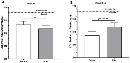 | LDL Size, (Å) | Placebo | Intervention | Δ | p-Value |