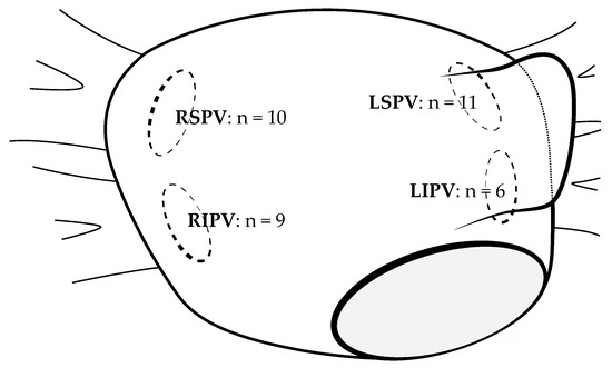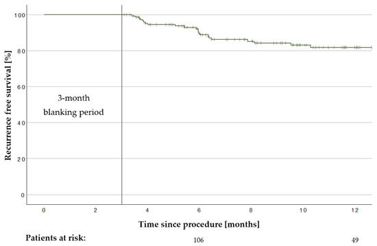 - Pott, A.; Kraft, C.; Stephan, T.; Petscher, K.; Rottbauer, W.; Dahme, T. Time-to-isolation guided titration of freeze duration in 3rd generation short-tip cryoballoon pulmonary vein isolation—Comparable clinical outcome and shorter procedure duration. Int. J. Cardiol. 2018, 255, 80–84. [Google Scholar] [CrossRef] [PubMed]