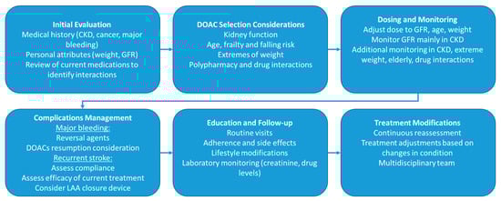 Algorithm for the initiation and management of DOACs in special populations. CKD, chronic kidney disease; GFR, glomerular filtration rate.