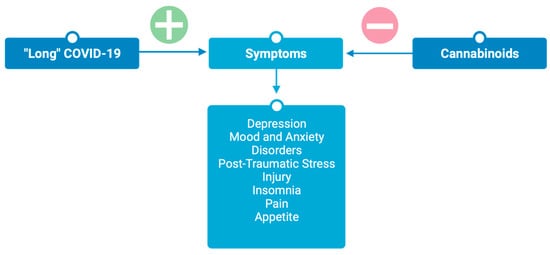 Mood and anxiety disorders have been reported in many patients suffering from post-acute COVID-19 syndrome. A cohort study conducted at Jin Yin-tan Hospital in China found that 23% of patients suffered from persistent symptoms of anxiety 6 months after symptom onset []. The endocannabinoid system is extensively distributed across the central nervous system (CNS) and plays a crucial role in the modulation of emotional responses, including fear, anxiety, and stress responses [].