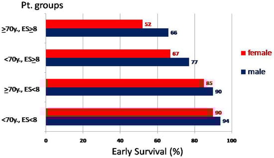 Early survival rates (male vs. female). Abbreviations: Pt: patient; ES: EuroScore; others as previously stated.
