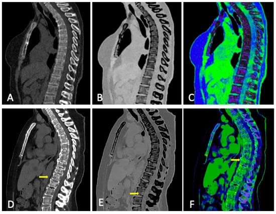 - Thomas, C.; Schabel, C.; Krauss, B.; Weisel, K.; Bongers, M.; Claussen, C.D.; Horger, M. Dual-Energy CT: Virtual Calcium Subtraction for Assessment of Bone Marrow Involvement of the Spine in Multiple Myeloma. Am. J. Roentgenol. 2015, 204, W324–W331. [Google Scholar] [CrossRef]