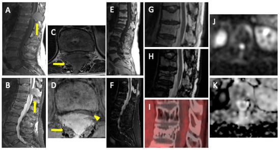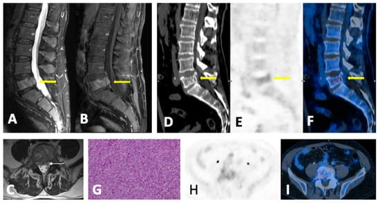 - Rodallec, M.H.; Feydy, A.; Larousserie, F.; Anract, P.; Campagna, R.; Babinet, A.; Zins, M.; Drapé, J.-L. Diagnostic Imaging of Solitary Tumors of the Spine: What to Do and Say. RadioGraphics 2008, 28, 1019–1041. [Google Scholar] [CrossRef]