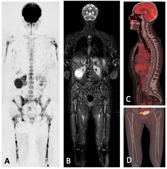 - Ormond Filho, A.G.; Carneiro, B.C.; Pastore, D.; Silva, I.P.; Yamashita, S.R.; Consolo, F.D.; Hungria, V.T.M.; Sandes, A.F.; Rizzatti, E.G.; Nico, M.A.C. Whole-Body Imaging of Multiple Myeloma: Diagnostic Criteria. RadioGraphics 2019, 39, 1077–1097. [Google Scholar] [CrossRef]