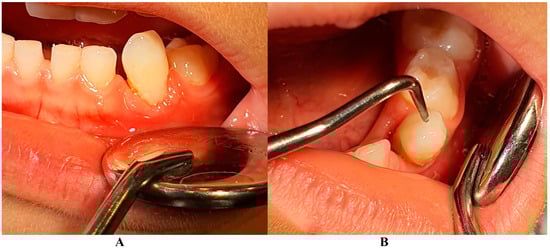 Systemic antibiotics (e.g., metronidazole and amoxicillin combinations, which are the most commonly used) correlated with nonsurgical therapy seem to supply better results, since bacteria invading subepithelial tissues are difficult to eradicate with scaling and root planning alone [5,6,9,10,16,17,18]. Local antimicrobials and antibiotics have been less investigated in correlation with non-surgical therapy, but there are reports of a combination of amoxicillin and metronidazole playing a positive role in the treatment of localized forms [5,6,9,10,16,19]. There is limited evidence reported for scaling and root planning associated with extraction of affected teeth to avoid the spread of periodontal disease to permanent teeth [5]. Other less-used non-surgical treatments include laser/photodynamic therapy and host response modulation [6,9]. The concept of “full-mouth disinfection” within 24 h (the association of scaling and root planning with antibiotics and disinfectants) has been shown to improve clinical outcomes [6,7].