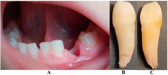 - Putrino, A.; Caputo, M.; Galeotti, A.; Marinelli, E.; Zaami, S. Type I Dentin Dysplasia: The Literature Review and Case Report of a Family Affected by Misrecognition and Late Diagnosis. Medicina 2023, 59, 1477. [Google Scholar] [CrossRef] [PubMed]