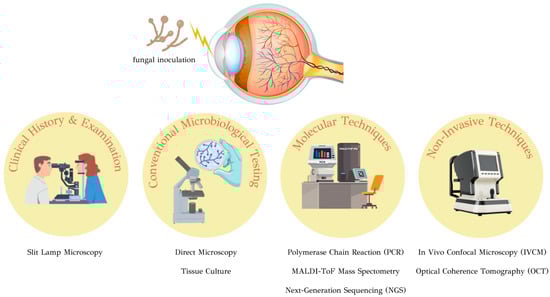 PCR can be conducted on diverse clinical samples, such as corneal scrapings/biopsies, tears, or aqueous humors, requiring only a small sample volume [2]. Τhis method allows for the detection of even trace amounts of fungal DNA, increasing the accuracy of diagnosis, especially in cases with a low fungal burden. Thus, PCR could help to establish an early diagnosis.