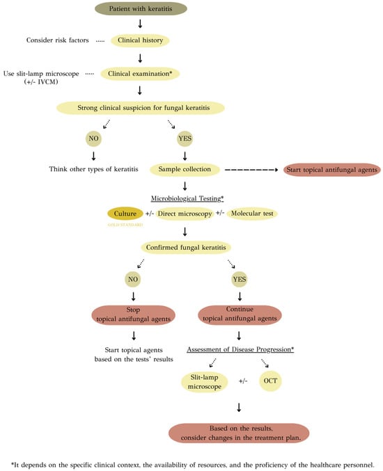 Toumasis, P., Tsantes, A. G., Tsiogka, A., Samonis, G., & Vrioni, G. (2024). From Clinical Suspicion to Diagnosis: A Review of Diagnostic Approaches and Challenges in Fungal Keratitis. Journal of Clinical Medicine, 13(1), 286. https://doi.org/10.3390/jcm13010286