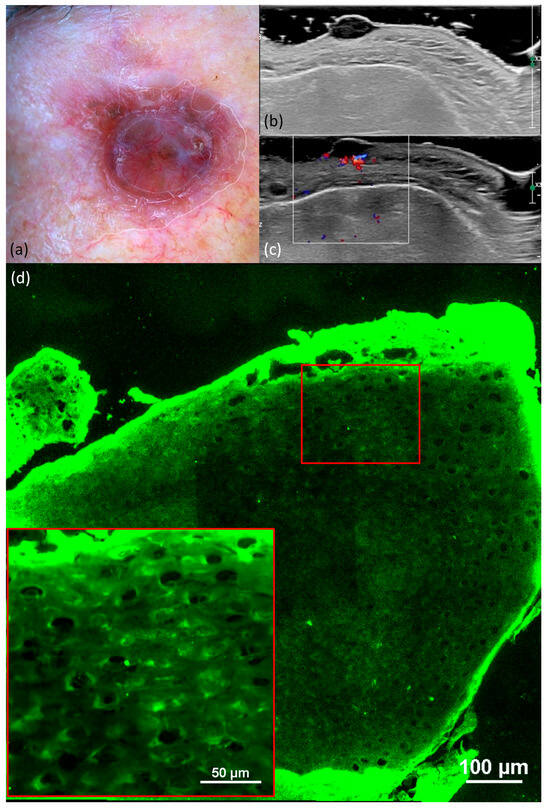 6]. Dermoscopy is a noninvasive imaging technique that has proven its usefulness in the diagnosis, management, and post-therapeutic evaluation of BCC. Another noninvasive imaging technique is confocal reflectance microscopy (RCM), which can be accessed in centers specialized in skin cancer [