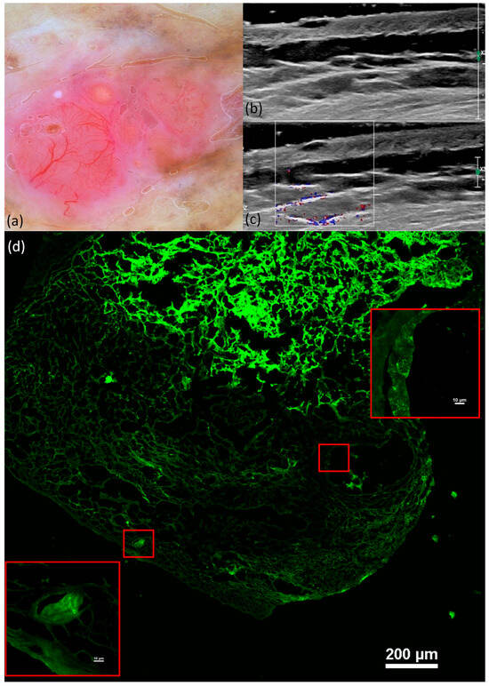 Along with US, dermatoscopy is an imaging technique that helps the dermatological clinical examination. The presence of arborized vessels in BCC is a dermatoscopic criterion with high sensitivity and specificity (over 90%) [