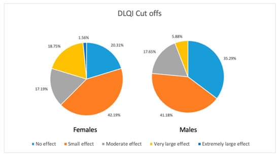 Differences in DLQI cut-offs between sexes.