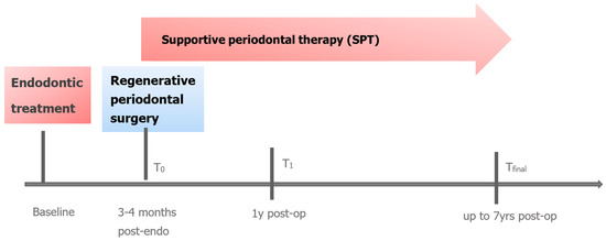 - Dong, T.; Zhang, Y.; Li, X. Time-lapse between periodontal regeneration surgery and root canal therapy in severe combined periodontal-endodontic lesions. Saudi Dent J. 2023, 35, 191–196. [Google Scholar] [CrossRef] [PubMed]