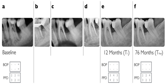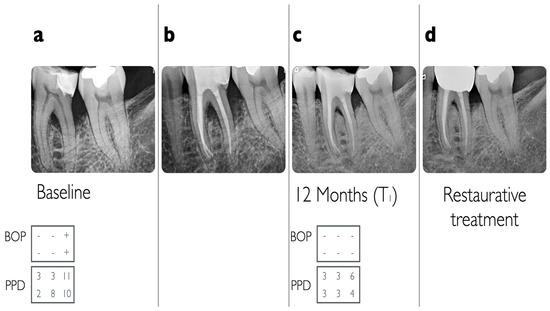 - Endodontic treatment was performed first and followed by periodontal regenerative surgery;