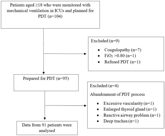- Shen, G.; Yin, H.; Cao, Y.; Zhang, M.; Wu, J.; Jiang, X.; Yu, T.; Lu, W. Percutaneous dilatational tracheostomy versus fibre optic bronchoscopy-guided percutaneous dilatational tracheostomy in critically ill patients: A randomised controlled trial. Ir. J. Med. Sci. 2019, 188, 675–681. [Google Scholar] [CrossRef]