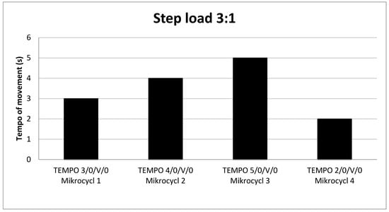 Figure 4). The main factor that intensified the progression of the load, in addition to the nature of the exercise, was the tempo of movement (TUT–time under tension) [