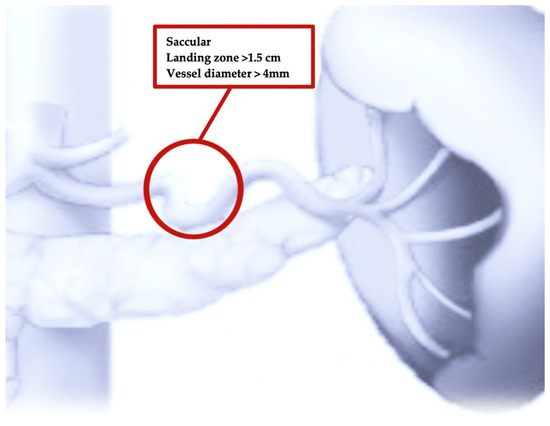 Therefore, currently, thanks to the evolution and improvement in endovascular technology and material, stent-graft positioning may represent an alternative option, particularly for saccular lesions of the mid splenic artery (Figure 2). Indeed, the availability of smaller-profile stent grafts, which can be delivered using small sheaths (6F to 8F) over a 0.018-inch or 0.035-inch guidewire system, also make it possible to navigate in smaller vessels with tortuous anatomies.