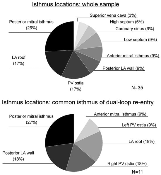 - Takigawa, M.; Derval, N.; Maury, P.; Martin, R.; Denis, A.; Miyazaki, S.; Yamashita, S.; Frontera, A.; Vlachos, K.; Kitamura, T.; et al. Comprehensive Multicenter Study of the Common Isthmus in Post-Atrial Fibrillation Ablation Multiple-Loop Atrial Tachycardia. Circ. Arrhythmia Electrophysiol. 2018, 11, e006019. [Google Scholar] [CrossRef]