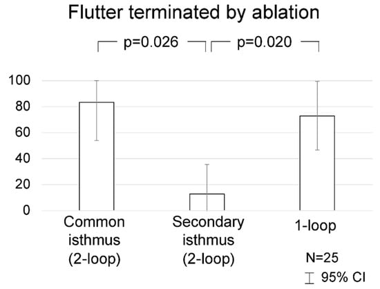 | Posterior mitral isthmus | 9 (26%) | 3 (27%) |