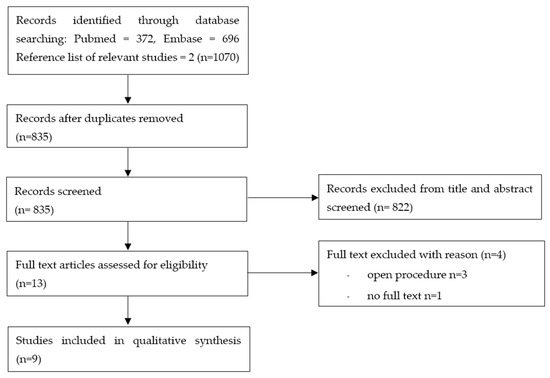 - “surger*” [Text Word] OR “laparos*” [Text Word] OR “surgical procedures, operative” [MeSH Terms] (4,862,000)