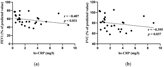 3.2. Correlations between Blood Biomarkers and Pulmonary Function Tests at Baseline