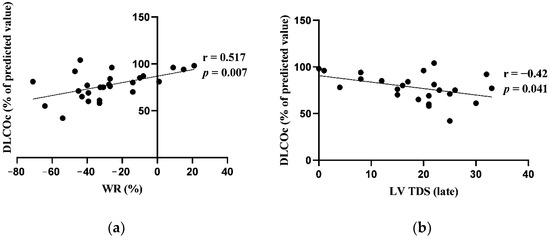 | LV-EDVi, ml/m2 | ResV/TLC, % | −0.406 | 0.032 |