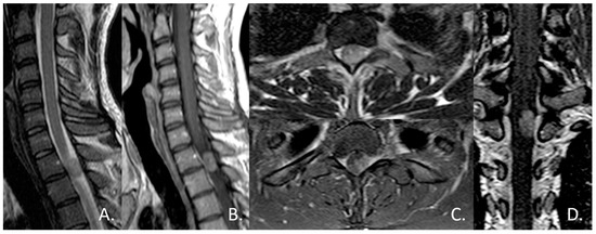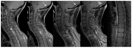 - Jung, J.S.; Choi, Y.S.; Ahn, S.S.; Yi, S.; Kim, S.H.; Lee, S.-K. Differentiation between Spinal Cord Diffuse Midline Glioma with Histone H3 K27M Mutation and Wild Type: Comparative Magnetic Resonance Imaging. Neuroradiology 2019, 61, 313–322. [Google Scholar] [CrossRef]