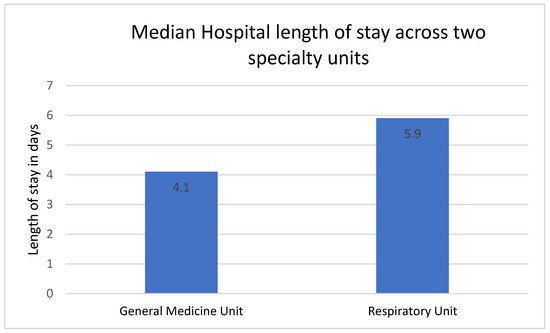 Comparison of median hospital length of stay across General Medicine and Respiratory units.