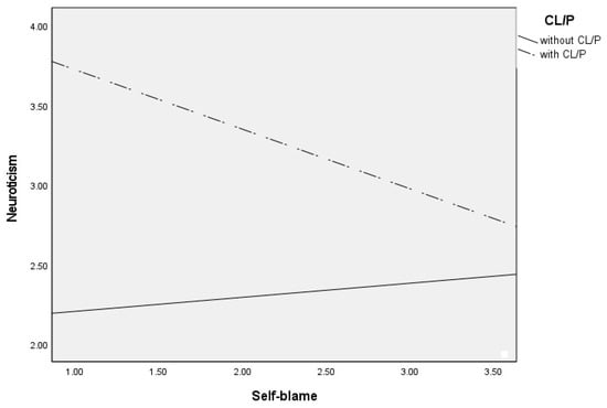 Differential effects between self-blame and neuroticism depending on CL/P and without CLP group.