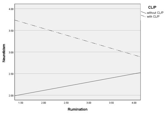 Differential effects between rumination and neuroticism depending on CL/P and without CLP group.