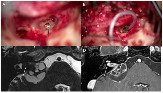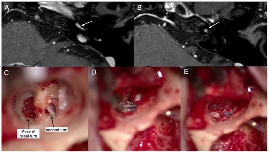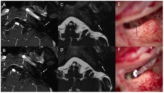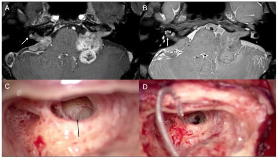 - Salzman, K.L.; Childs, A.M.; Davidson, H.C.; Kennedy, R.J.; Shelton, C.; Harnsberger, H.R. Intralabyrinthine schwannomas: Imaging diagnosis and classification. AJNR Am. J. Neuroradiol. 2012, 33, 104–109. [Google Scholar] [CrossRef]