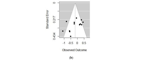 (a) Forest plot meta-analysis comparing the best corrected visual acuities (BCVAs) at last follow-up between Yamane versus sutured scleral fixation. Each study is shown by the last name of the first author and the mean difference (MD) with 95% confidence interval (CI) [5,20,21,22,23,24,25,26,27,28,29,30,31]. The summary mean difference and 95% CI are also shown (according to random-effect estimations). For subgroup analysis, studies are separated by single surgeon, multiple surgeons, or unspecified number of surgeons. (b) Funnel plot of the studies included in the meta-analysis. IV = inverse variance; SD = standard deviation.