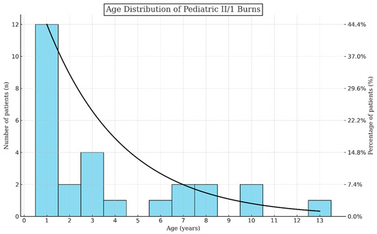Our study evaluated 27 pediatric patients—14 managed at Pécs and 13 at Szeged, Hungary—treated with PHMB gel for II/1 burns. This cohort was characterized by a male-predominant gender distribution (66% male, 33% female) and an age range from 1 to 13 years (mean: 3.74, SD: 4.73), similar to international reports [