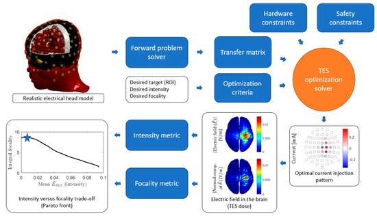 - Wang, Y.; Brand, J.; Liu, W. Stimulation Montage Achieves Balanced Focality and Intensity. Algorithms 2022, 15, 169. [Google Scholar] [CrossRef]