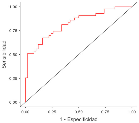 ROC curve for Crohn’s patients belonging to the group with high social support.