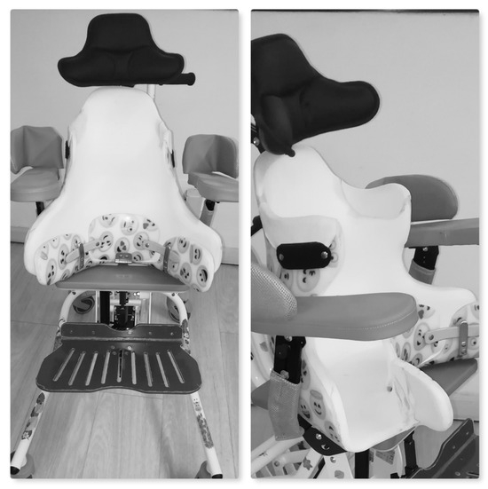 - Kim, I.S.; Park, D.; Ko, J.Y.; Ryu, J.S. Are Seating Systems With a Medial Knee Support Really Helpful for Hip Displacement in Children With Spastic Cerebral Palsy GMFCS IV and V? Arch. Phys. Med. Rehabil. 2019, 100, 247–253. [Google Scholar] [CrossRef] [PubMed]