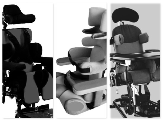 Examples of adaptive seating systems, ensuring axial alignment and a comfortable and safe position (TS group).