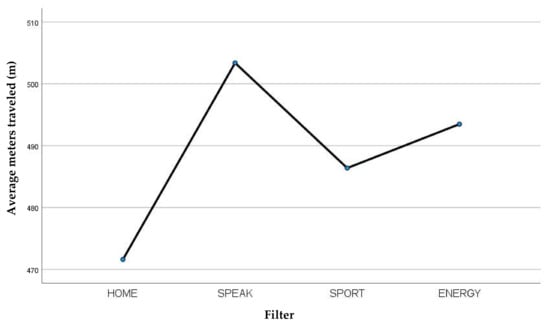 Then, the parameter of meters traveled was examined. The Bonferroni test was applied in the multiple comparisons between the four filters studied and it was set as a variable depending on the meters traveled (Table 5); the significant differences found were the following: