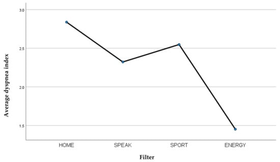 Average dyspnea index recorded for each filter.
