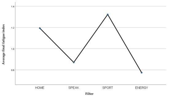 Average final fatigue index recorded for each filter.
