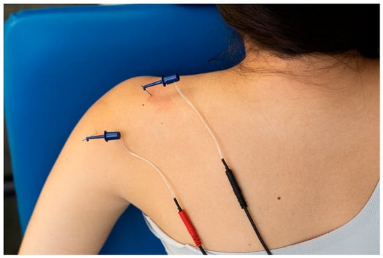 Interestingly, most treatment strategies investigated for shoulder pain focus on soft tissues (muscle, tendon), and although it indirectly affects the peripheral nerve system, direct stimulation of nerve tissues is lacking. Thus, interventions directly targeting nerve tissues have been proposed as potential novel approaches for managing chronic pain [11]. Percutaneous electrical nerve stimulation (PENS) consists of applying an electrical current throughout filiform solid needles targeting a specific tissue (e.g., muscle, ligament, nerve). The term PENS includes several therapeutic approaches. For instance, electrical dry needling or electroacupuncture could be considered PENS interventions since both apply an electrical current through a filiform solid needle; however, the clinical reasoning and technical performance of both approaches are different. Electrical dry needling is clinically based on pain neuroscience (e.g., Western medicine), whereas electroacupuncture is clinically based on meridian/energy theories (e.g., Chinese medicine). In addition, the targeted points are also different since the needles are inserted into the muscle, joint, or ligament with electrical dry needling, whereas the needles are inserted into acupuncture points in electroacupuncture. The electrical current most commonly applied with PENS interventions is biphasic, with frequencies ranging from 2–5 Hz (low-frequency) to 80–100 Hz (high-frequency) and pulse widths ranging from 250 to 500 ms depending on the effects desired. It is supported that low-frequency electrical stimulation produces an activation of μ and δ opioid receptors, whereas high-frequency electrical stimulation activates δ and k opioid receptors [12].