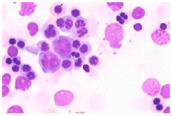 CDAs constitute a group of rare disorders marked by defects in RBC production due to genetic mutations impacting their development and erythropoietic maturation. CDAs are congenital and present from birth, characterized by ineffective erythropoiesis, with moderate to severe anemia and increased infection risk. The diagnosis is based on a bone marrow morphological examination characterized by abnormal erythroblastic features (Figure 2), hyperbilirubinemia leading to jaundice, and, potentially, splenomegaly. These conditions demonstrate genetic heterogeneity, with subtypes (CDA-I, CDA-II, and CDA-III, among others) each associated with specific genetic mutations affecting erythropoiesis. Treatment focuses on managing anemia and its symptoms, potentially including blood transfusions, iron store management, and bone marrow transplantation in severe cases [9].