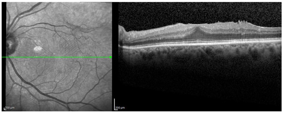 Currently, structural optical coherence tomography (OCT) provides an objective method for the diagnosis of ERMs, and the widely adopted Govetto grading system classifies idiopathic ERMs into four stages of severity based on the OCT appearance of foveal depression and retinal layers [4]. In recent years, there has been a notable increase in OCT studies examining macular anatomical changes that can adversely affect visual function. These studies have played an important role in characterizing most retinal diseases of medical and surgical interest. Among the retinal pathologies of surgical interest, extensive evidence has been gathered on ERMs. This evidence has focused on aspects such as alterations in retinal anatomy, including the disruption of the ellipsoid zone (EZ) and photoreceptor outer segments [5,6,7]. Photoreceptor disruption detected using OCT has been identified as a predictor of poor visual recovery after ERM surgery [5]; moreover, vision loss and symptoms such as metamorphopsia have been shown to be significantly associated with the thickness of inner retinal layers [8,9,10]. However, in order to fully understand the severity of the pathology and to define indications for surgery, the patient’s visual symptoms and discomfort during daily activities should also be considered [11]. Furthermore, recent non-invasive methods of analyzing microvascular changes using optical coherence tomography angiography (OCTA) have proven useful for objectifying the progression of epiretinal membranes [12,13,14].