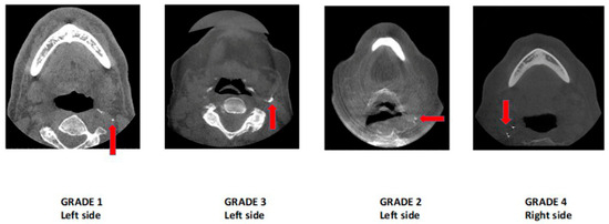 Dentists and oral and maxillofacial radiologists (OMFRs) currently face a challenge due to the absence of a reliable radiographic staging system or classifications for ECACs detected in CBCT scans. Accurate classification of these calcifications is crucial for effectively categorizing patients and referring them for further assessment and timely treatment. The majority of existing classifications for carotid artery calcifications are based on CT, magnetic resonance imaging (MRI), or US imaging [12,13,14]. Hence, the study aimed to develop a practical staging method for reporting ECACs specific to CBCT imaging to standardize reporting practices for OMFRs.