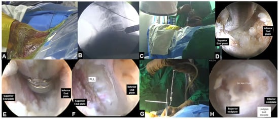 - Ahn, J.S.; Lee, H.J.; Choi, D.J.; Lee, K.Y.; Hwang, S.J. Extraforaminal approach of biportal endoscopic spinal surgery: A new endoscopic technique for transforaminal decompression and discectomy. J. Neurosurg. Spine 2018, 28, 492–498. [Google Scholar] [CrossRef] [PubMed]