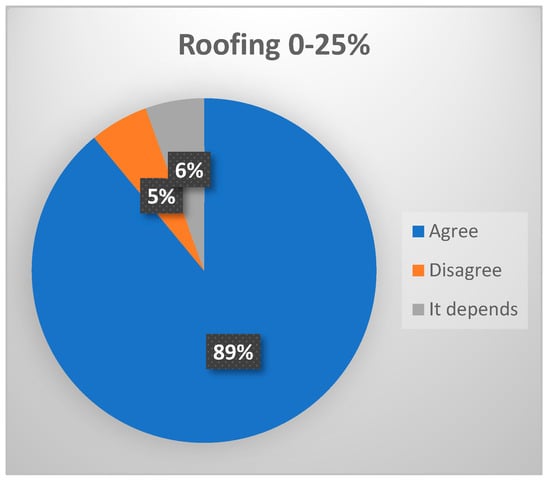 - Roofing 0–25%: in cases characterized by disc displacement without reduction (DDwR), “roofing” will be 0% or almost 0%, corroborating the presence of retrodiscal tissue with a variable number of vessels on the surface of the mandibular condyle []. (Consensus was reached, with 88.8% of voters agreeing that roofing 0–25% is expected in patients with late-stage ID of TMJ, (Figure 3).)